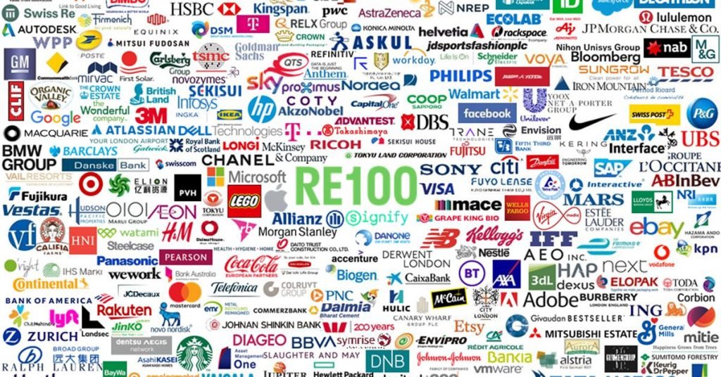 全球氣候組織(The Climate Group)與節約能源聯盟(The Alliance to Save Energy)合作全球【EP100】倡議,提倡使用更少的能源,做更多的事情,訴求企業支持以聰明、更有效率地使用能源來提升生產力,以降低溫室氣體排放並加速邁向潔淨經濟,許多知名企業例如Apple、Google、微軟、台積電已經加入成為成員,加入的企業必須公開承諾在2020~2050年間達成100%使用再生能源的目標,並逐年提報用電數據。下面圖示可以了解目前已有哪些企業加入,來看看你認識的企業有多少?